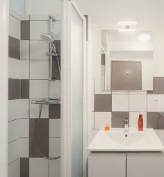 - Salle d'eau avec lavabo, baignoire, WC